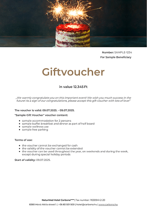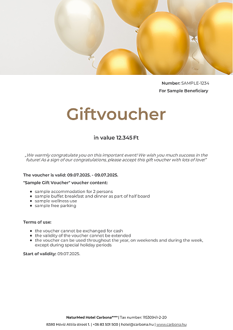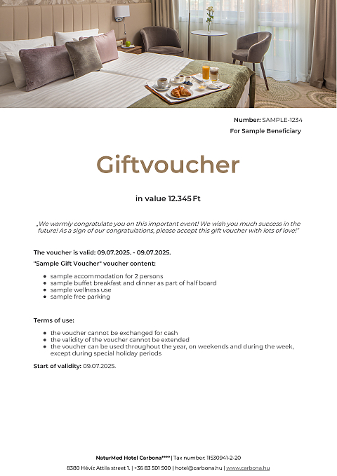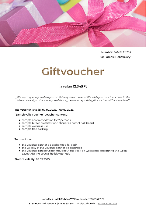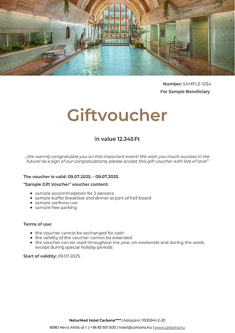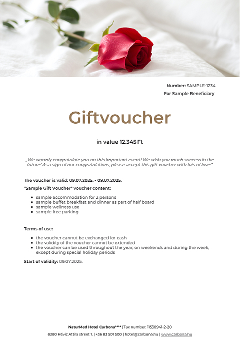 - Customizable gift voucher allowing the recipient to choose from: room bookings, wellness, medical spa and beauty treatments or restaurant fees.